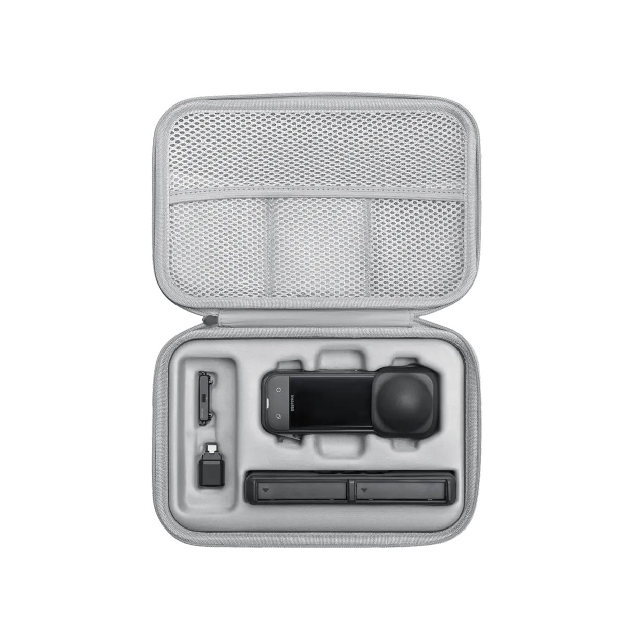 Bagian dalamnya didesain presisi agar kamera dan aksesori tetap aman dan tidak mudah bergeser. Desainnya ringkas dan ringan, cocok untuk penggunaan harian maupun perjalanan. Selain itu, carry case ini dilengkapi tempat khusus untuk Invisible Selfie Stick di bagian luar, sehingga lebih praktis dibawa dan mudah diakses saat digunakan.