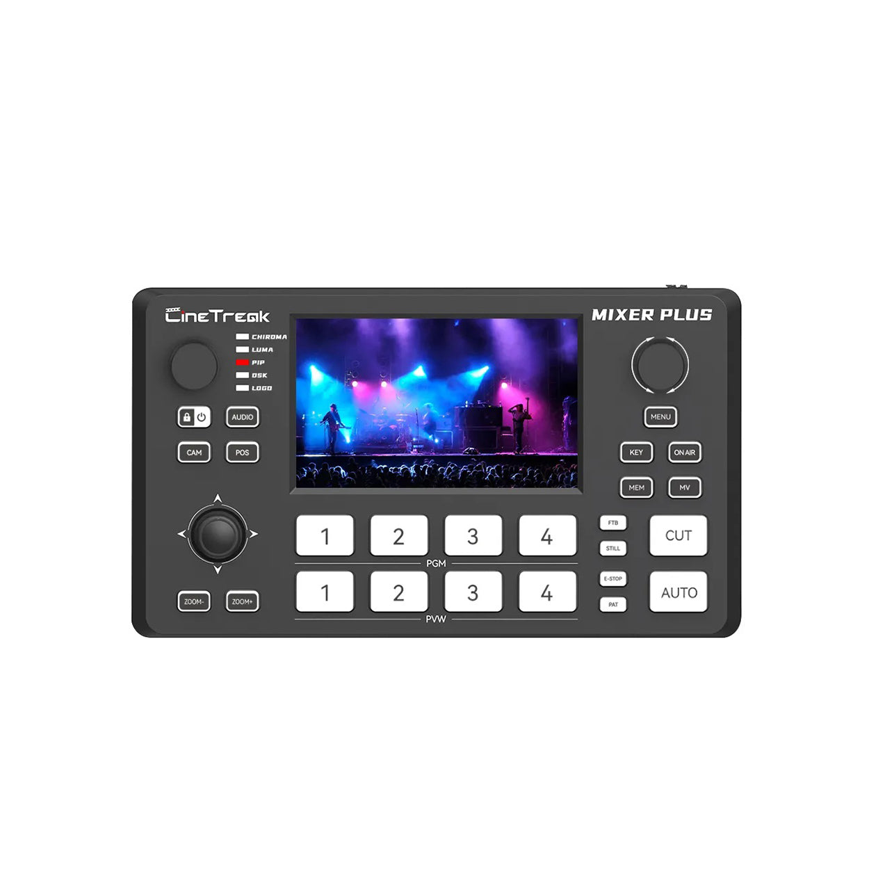 Cinetreak Mixer Plus 4 Channel HDMI Video Switcher with 4" Display adalah pengalih video yang ringkas dan berfitur lengkap, Dengan desain super kecil dan ultra-kompak, dilengkapi layar terintegrasi untuk pemantauan Multi View secara real-time.