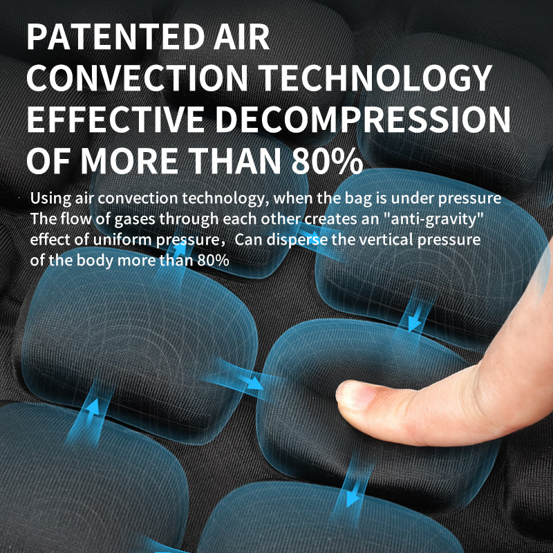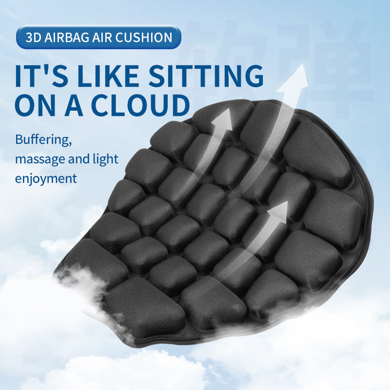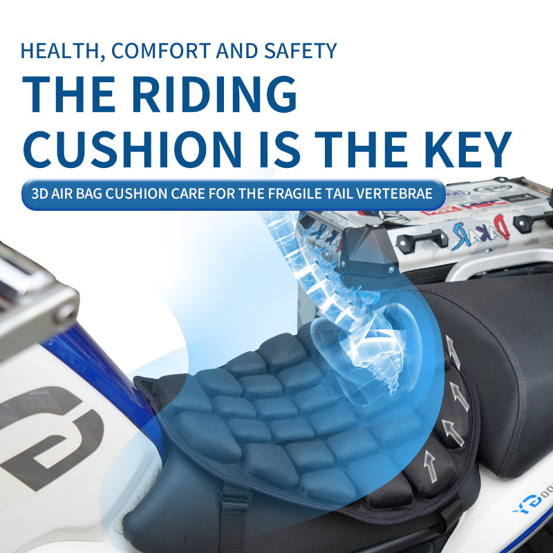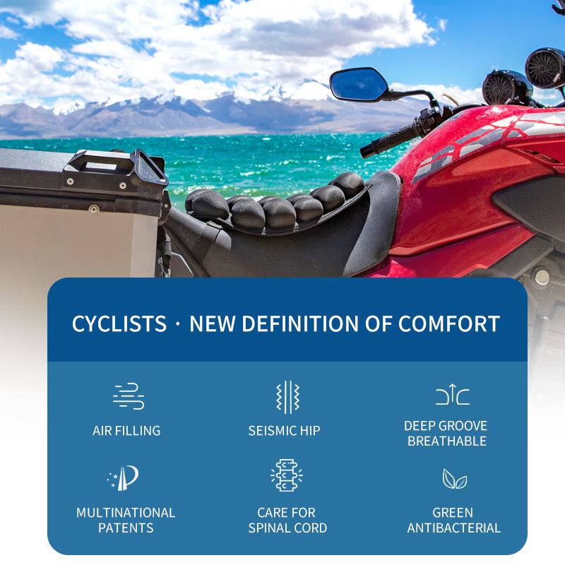 Dapat menopang dan menyesuaikan bokong dengan lebih efektif dan terasa lebih nyaman. Kantung udara 3D bertekanan tinggi berfungsi sebagai bantalan, menyerap benturan saat riding dan secara signifikan mengurangi risiko cedera pada tulang belakang. Dalam uji coba kondisi nyata, alat ini dapat meredam guncangan secara signifikan sehingga mengurangi potensi kerusakan pada organ tubuh manusia akibat berkendara dalam jangka waktu lama.